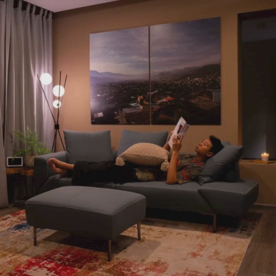 Caring for your leather sofa: • To prevent leather drying out and cracking, keep your sofa away from direct heat and sunlight. • Wipe up water spills quickly to avoid stains. Clean the sofa regularly with a damp and clean cloth. • Claws and saliva from pets may damage the leather finishing. It is recommended to keep them away from the sofa. • Use professional leather care products to refresh the leather every 6-12months.